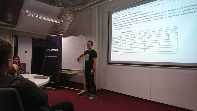 @andreicacio showing us the insides of Web Assembly @jsheroes community meetups #wasm #javascript #weassembly #rust pic.twitter.com/UHzHUL9tVD