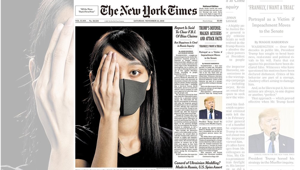 #HK police spotted safe & sound in Sep 2020. Some media iconized her as victim of police brutality, as shown by NYT front page on Nov 23 2019, where her "eye injury by a projectile" was portrayed as a fact. Now, will the NYT correct itself?pic.twitter.com/X6tsHa9bBX