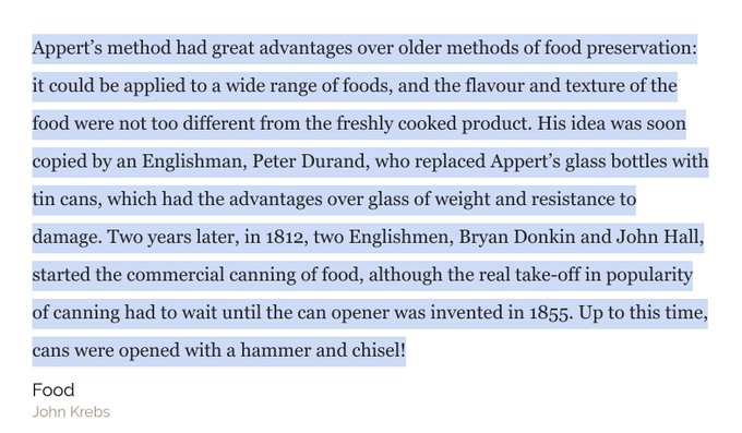 Bc the impetus behind canning was military - Napeolon offered a reward, to feed his armies during march.
