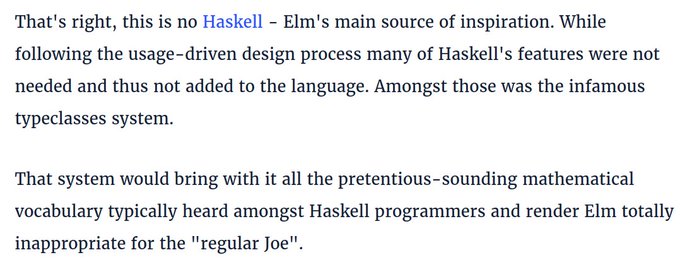 Why is there so much drama over a random unsourced interpretation of Elm's design? Few Elm users hold that opinion, for many it's a gateway