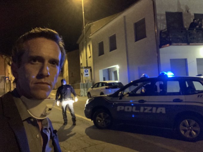 We’re near the exclusion zone beside #Codogno, the epicentre of #Italy’s #Coronavirus outbreak. Police say if we cross here, we’d need to quarantine and couldn’t leave for some time. A resident told me by phone just one fruit/vegetable shop is open in a town of 16,000 people. pic.twitter.com/lQUnE4GEDT