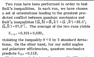 A question for people who know about Bell inequalities: in the 1982 Aspect paper they present them in this form (a version of the CHSH inequality), with an experimental value (& violation) of S = 0.101 pic.twitter.com/MR1CcBfO2q