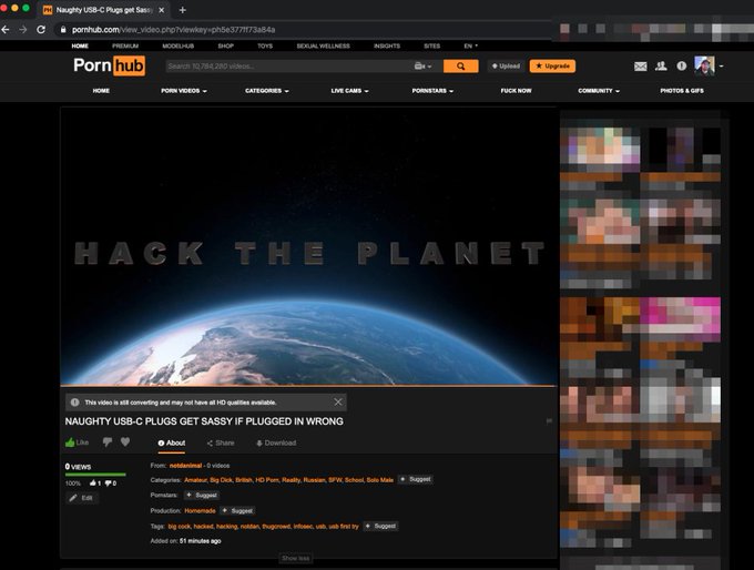 My @Pornhub Hacking Channel is now LIVE! Check out my first video (the USB-C one) and get ready for much more! I will be putting my streaming archives here from now on. :)