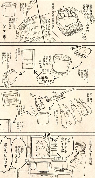 熊の手の料理について少し見てみたら思った以上に大変なことでした(ざっくり流れだけ) pic.twitter.com/9QUjR3vtIa