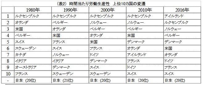 時間当たり労働生産性 上位10カ国の変遷 pic.twitter.com/13FrO9vvRC