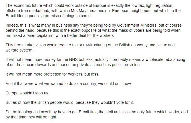 Tony Blair nails it: Tory #Brexit is about an offshore low tax free-market hub - Thatcherism on steroids.