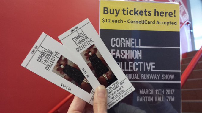 Need tickets for the @CUFashion runway show this Saturday? Buy them at the main store, upper & lower levels. #CUFashion #CornellFashion pic.twitter.com/q3xVDTSLfQ