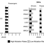Finally, we demonstrate that a simple evolutionary model incorporating HRI can explain these observed patterns of selection and allowed us to estimate the mean fitness effects of passengers (~1%) and drivers (~18%) – much larger than previously estimated. (8/10)