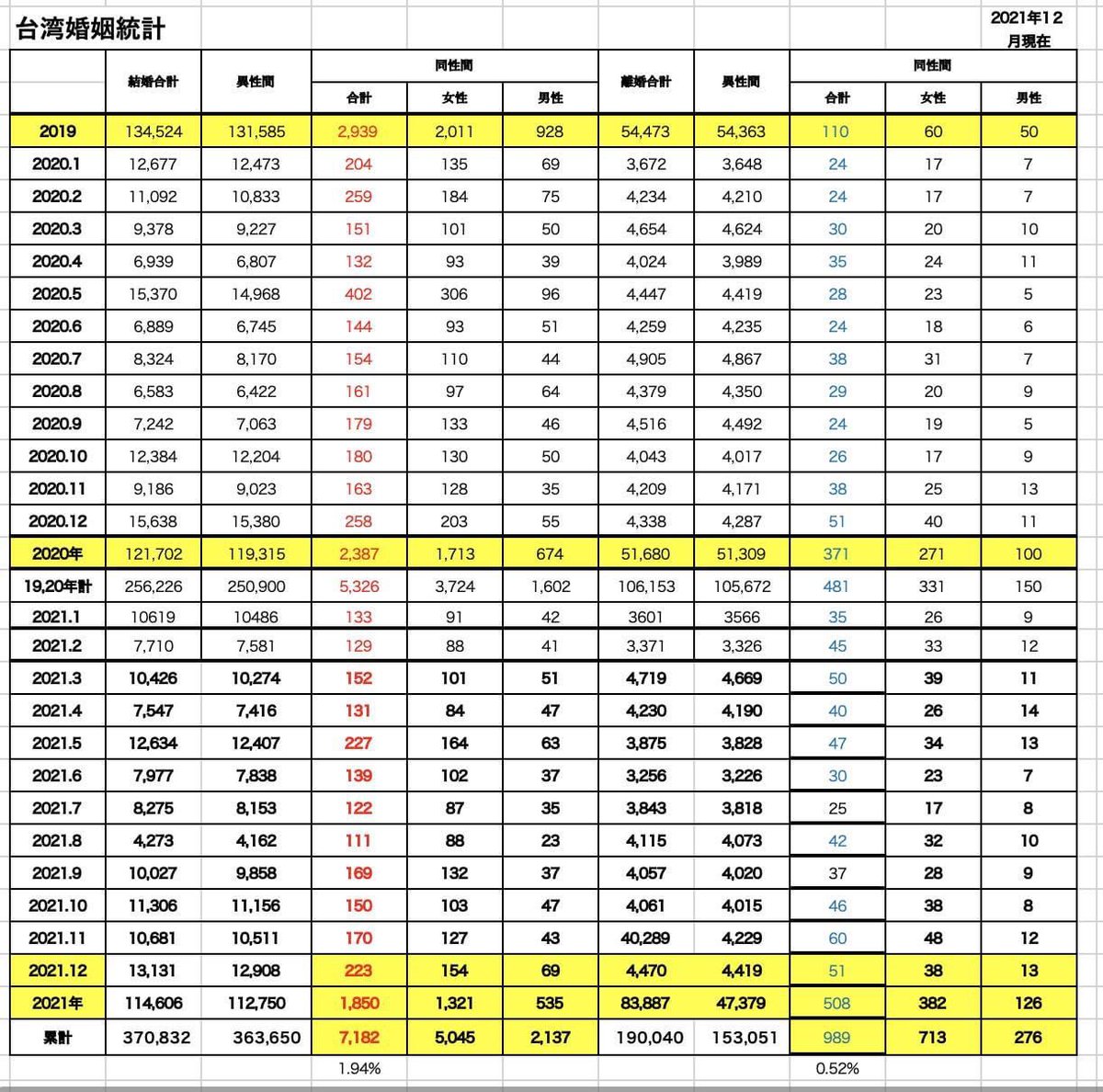 2019年にアジアで初めて、性別にかかわらず結婚できるようになった台湾 7000組以上が婚姻(台湾の人口は、日本の 5分の1程度)。 日本も早く。https://twitter.com/xianken1/status/1480361608962768898 …