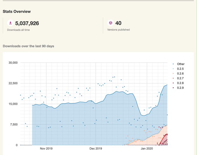 5,000,000 downloads 🎉 and solid 0.2.x adoption! There is a lot more in the works. It will be an exciting 2020.