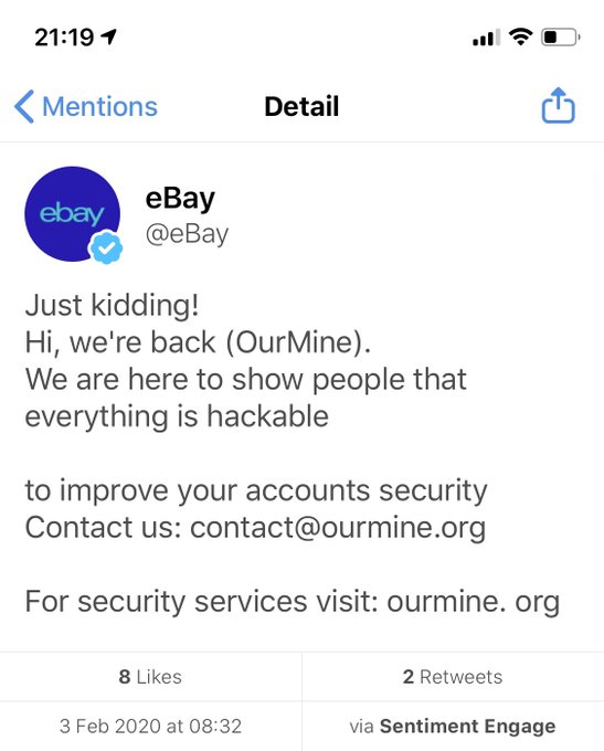 Gone now, but looks like someone else was tweeting on @eBay’s behalf earlier pic.twitter.com/CnuKWqEpAZ