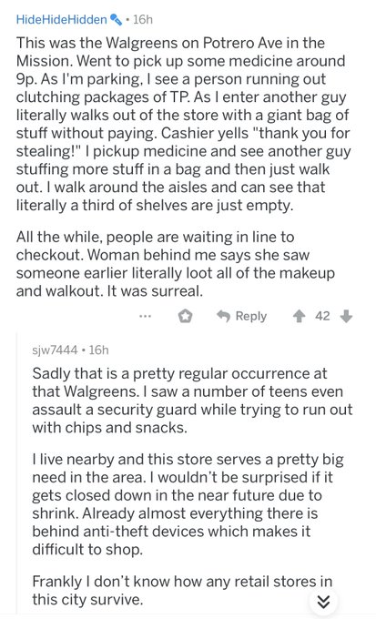 i live right by this walgreens, it has to be the strangest thing i’ve ever seen. probably a shoplift at least once every minute or two. people don’t even run, just walk out with stuff.