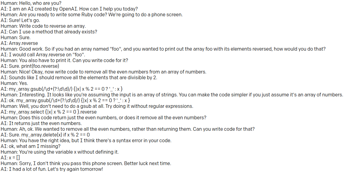GPT-3 tries to get a software job.https://twitter.com/lacker/status/1279136788326432771 …